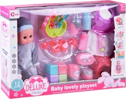 Setul include biberon, suzetă, scutec, oliță și multe alte accesorii pentru o experiență completă de joacă cu păpușa.