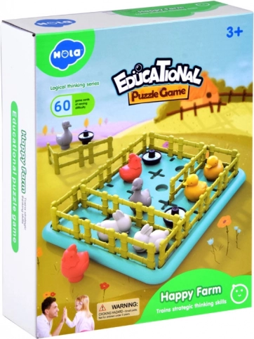 Wesoła Farma este conceput ca un joc educativ care susține recunoașterea culorilor și formelor, exersează gândirea logică și abilitățile de observare. În plus, jocul ajută la dezvoltarea capacităților analitice și a coordonării. Copiii pot juca singuri sau împreună cu un prieten folosind cărțile cu imagini incluse, care servesc drept șabloane pentru așezarea animalelor pe tablă.