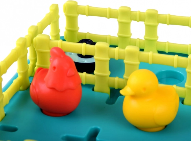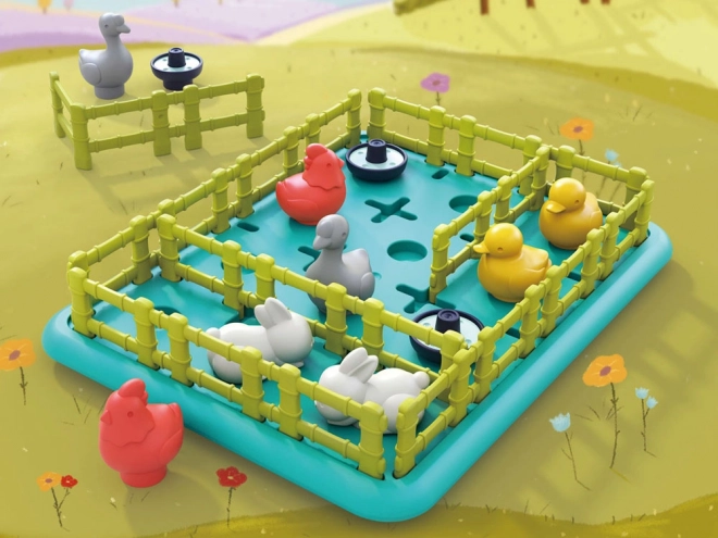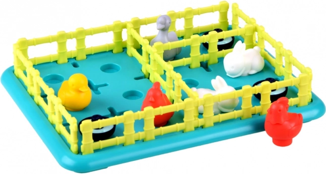 Conținutul pachetului include o planșă de joc, diverse garduri din plastic, figurine de animale precum iepuri, rațe și gâște, și un ghid de instrucțiuni. Materialele sunt de înaltă calitate, colorate și plăcute la atingere.