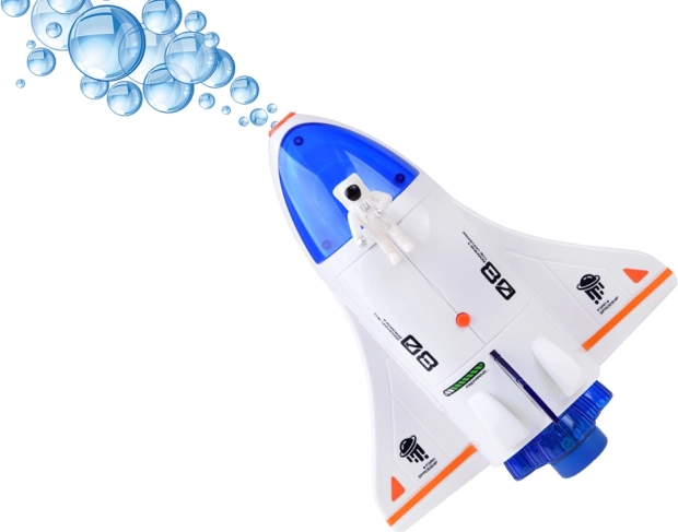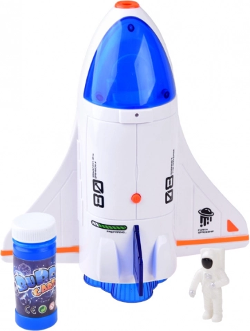 Automatul de bule în formă de rachetă este visul fiecărui mic aventurier. Odată ce introduceți sticla cu soluție în partea de jos a rachetei și apăsați butonul de pe spatele ei, începe magia plină de bule colorate. Copiii pot vedea cum se mișcă racheta și din partea ei frontală se eliberează bule vesele.