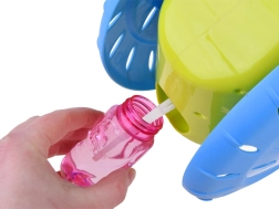 Producția de bule este însoțită de o melodie veselă și efecte de lumini.