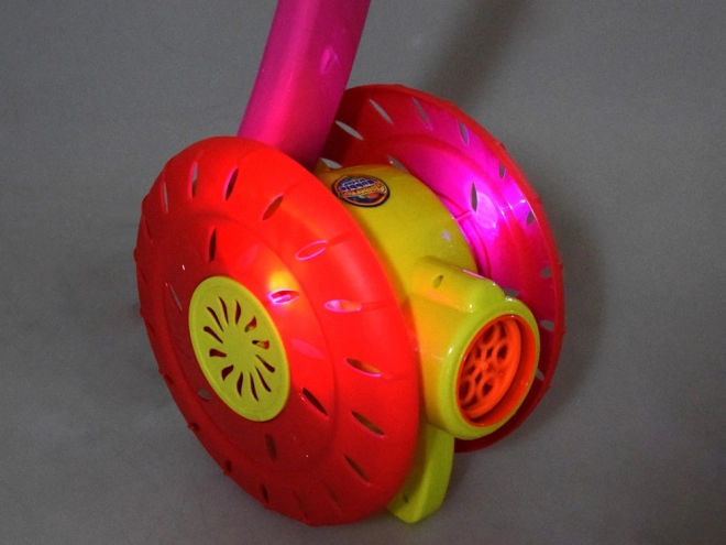 Bucurați-vă de ore de distracție cu acest cărucior de împins, care produce bule în timpul mersului. Jucăria este proiectată să dezvolte abilitățile motorii, să încurajeze plimbările și să stimuleze dezvoltarea imaginației. Jucăria redă, de asemenea, o melodie veselă și are luminițe colorate.