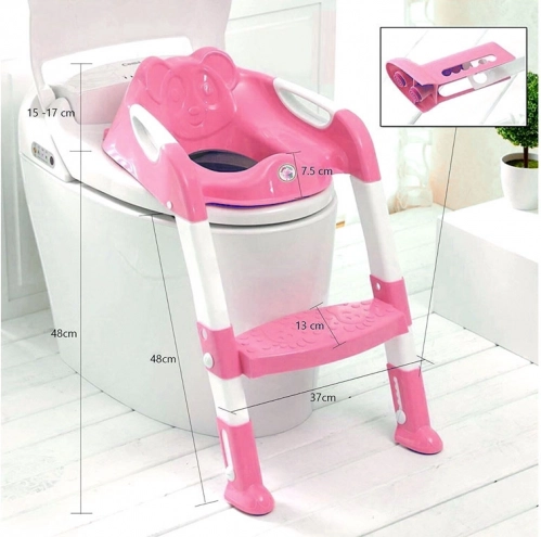 Acest scaun de toaletă roz cu panda este conceput pentru a ajuta copilul să treacă mai ușor de la oliță la toaleta obișnuită. Caracteristici: