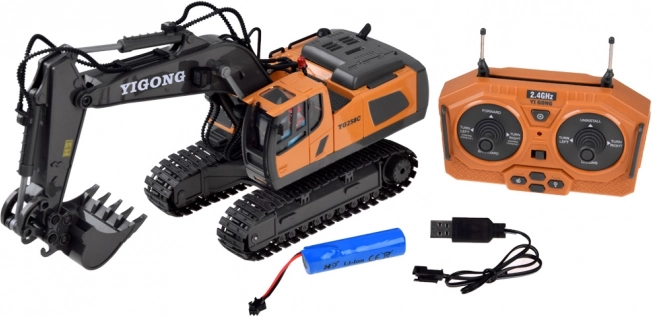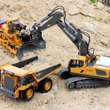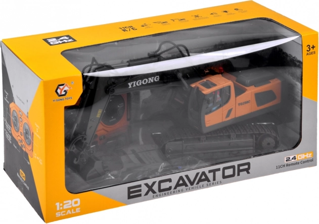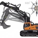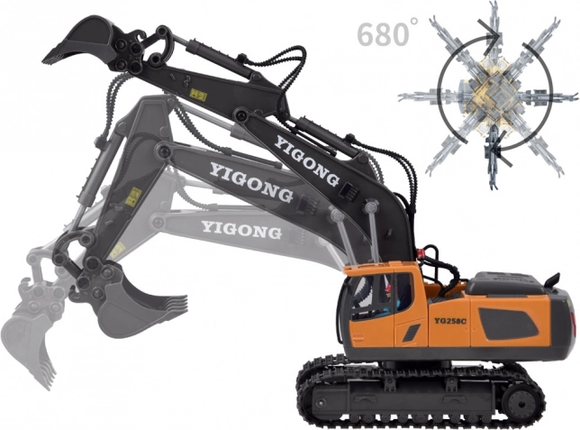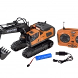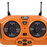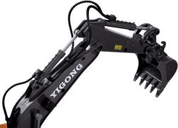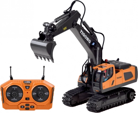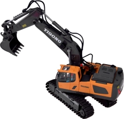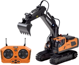 Telecomanda ergonomică 2,4 GHz asigură rază stabilă fără interferențe și permite mers înainte/înapoi, virare dreapta/stânga, rotire pe loc, precum și control complet al brațului și cupei. Este disponibil și modul demo. Excavatorul are capotă de motor rabatabilă și o construcție de calitate pentru durabilitate îndelungată.