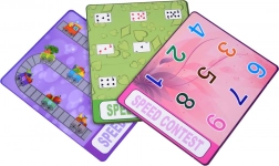 Cărțile față-verso cu litere și numere exersează recunoașterea rapidă și ordonarea logică. Ideal pentru preșcolari și școlarii mai mici.