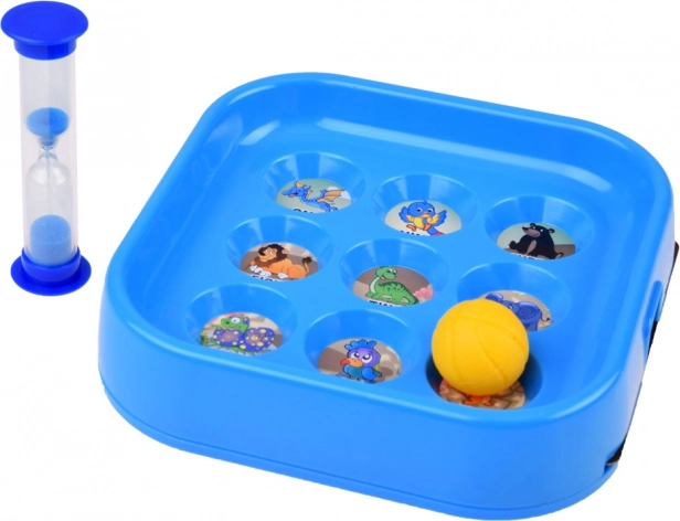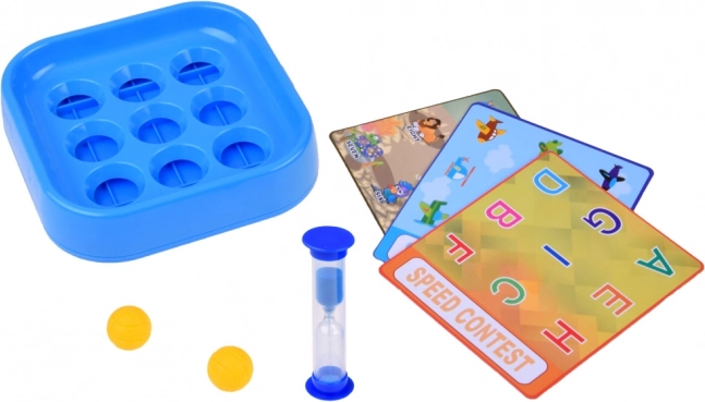 - Suport din plastic, 3 cărți față-verso cu table de joc, 2 mingi, clepsidră
