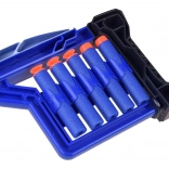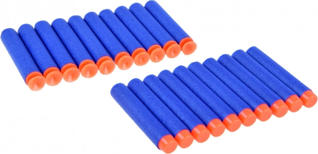 Pachetul include 20 de săgeți albastre cu vârf portocaliu. Material moale pentru distracție acasă și în aer liber.