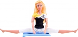 Păpușa flexibilă, cu păr blond lung, este îmbrăcată într-un set sport cu colanți elastici și top, pentru a se antrena confortabil. Construcția articulată permite setarea realistă a brațelor, picioarelor și trunchiului, astfel încât imită cu ușurință asane și poziții gimnastice preferate.
