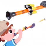 Țeava de suflat ușoară și proiectilele moi din spumă adaugă jocului un element dinamic, rămânând în același timp sigure pentru utilizarea în interior.