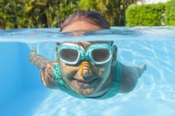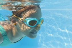 Ochelarii de înot destinați copiilor de la 7 ani sunt echipați cu benzi reglabile, care permit ajustarea precisă pe capul utilizatorului. Ochelarii au lentile cu protecție UV, care protejează ochii copilului de razele solare nocive. Cupele moi și confortabile asigură comoditate și previn pătrunderea apei.