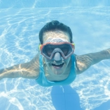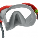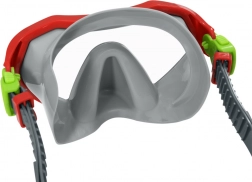 Lentila din policarbonat cu filtru UV protejează ochii de soare chiar și la înotul la suprafață. Cureaua divizată, reglabilă, permite strângerea rapidă și precisă pentru diverse mărimi ale capului, astfel încât masca rămâne pe poziție chiar și la sărituri în apă.