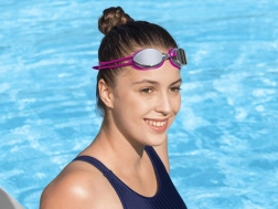 Ochelari de înot stilizați BESTWAY Elite Blast Pro pentru vârsta 14+ oferă lentile policarbonat oglindă cu protecție UV și tratament antifog. Datorită etanșărilor din silicon moi, reglării rapide a curelei și execuției fără latex și fără PVC, se potrivesc excelent și etanșează fiabil atât la antrenament, cât și la înot recreativ.