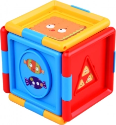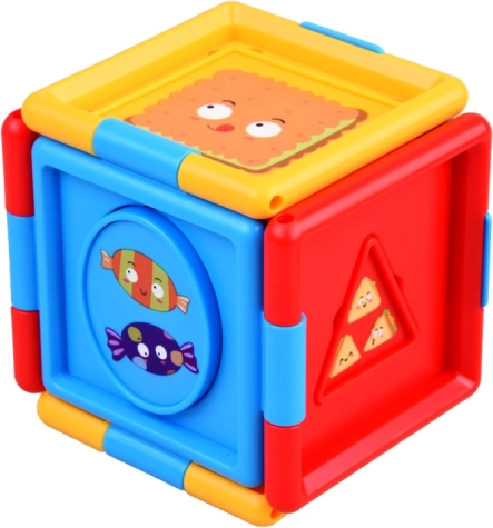 Cubul este decorat cu imagini colorate și culori vibrante, ceea ce îi sporește atractivitatea și stimulează curiozitatea copiilor. Este realizat din plastic, asigurând astfel durabilitatea și siguranța pentru micii utilizatori.