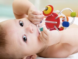 Jucăria de dentiție oferă diverse texturi și culori care stimulează simțurile copilului dumneavoastră.