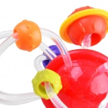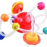 Jucăria de dentiție este un ajutor excelent pentru copiii care au nevoie de alinare de durere în perioada apariției dinților datorită diverselor texturi ale suprafeței. Motivează la joacă prin culorile vii și tuburile ușor de prins. Elementele flexibile permit copiilor o prindere și o mișcare ușoară pe suprafața jucăriei.