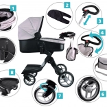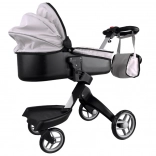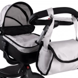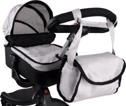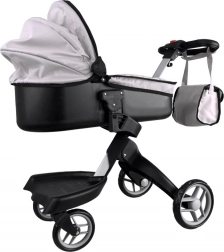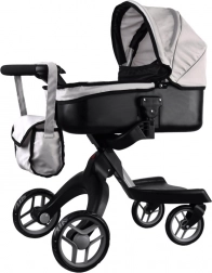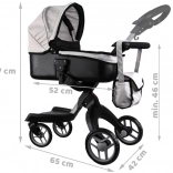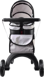 Cărucior modern gondolă pentru păpuși, permite oricărui copil să-și ia la plimbare păpușa preferată, ursulețul de pluș sau mascota. Cărucior spațios cu design modern, ușor de condus datorită roților mari din spumă; mânerul căruciorului poate fi reglat ușor în funcție de înălțimea copilului. Căruciorul are suficient spațiu pentru a așeza păpușa pe o saltea moale, capota căruciorului este pliabilă și are o husă detașabilă. Căruciorul este, de asemenea, echipat cu o geantă spațioasă pentru accesorii necesare.