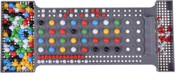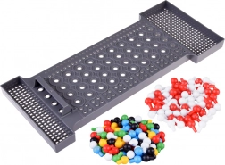 O tablă gri din plastic, cu grilă și compartimente de depozitare, păstrează pionezele colorate mereu la îndemână și jocul bine organizat.