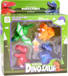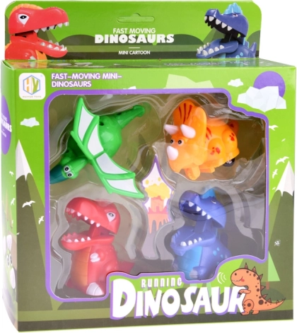 Un set adorabil cu patru dinozauri care se deplasează va încânta orice mic pasionat de preistorie. Figurinele din plastic de calitate pornesc singure după apăsarea unui element ales. În pachet găsiți T‑Rex roșu, pterodactil verde, triceratops portocaliu și spinosaurus albastru. Culori grozave, design sigur și un mecanism mecanic distractiv pentru ore întregi de joc creativ.