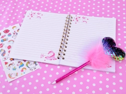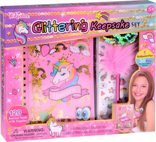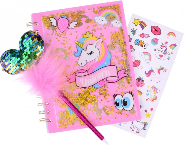 Acest jurnal magic cu tematică de unicorn oferă un spațiu ideal pentru a scrie gândurile, secretele și ideile tale. Cu o copertă strălucitoare presărată cu particule sclipitoare, oferă jurnalului un aspect unic și atrăgător. Setul încântător include și un pix roz cu pompon pufos și inimă sclipitoare, împreună cu autocolante colorate pentru decorare creativă.