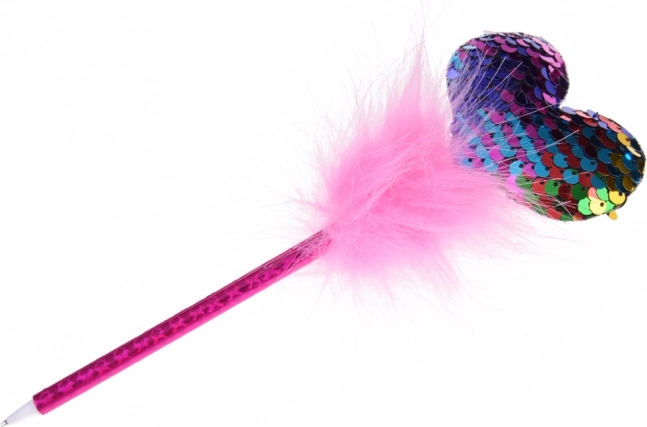 Pixul roz cu paiete și pompon pufos adaugă farmec fiecărei note.