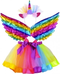 Descoperiți magia cu acest costum unic de unicorn, care permite fiecărui copil să pătrundă într-un tărâm plin de miracole. Acest set include o frumoasă fustiță colorată în culorile curcubeului, aripi care strălucesc și o bentiță unică cu corn de unicorn.
