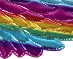 Aripile sunt realizate din material cu suprafață strălucitoare și elemente multicolore, creând un efect magic uimitor.