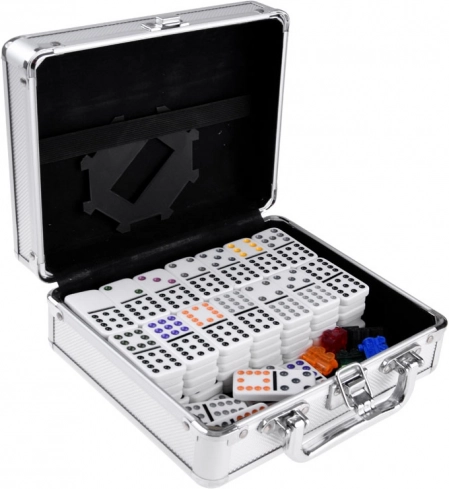 - Conține 91 de piese de domino și toate accesoriile necesare pentru joc.