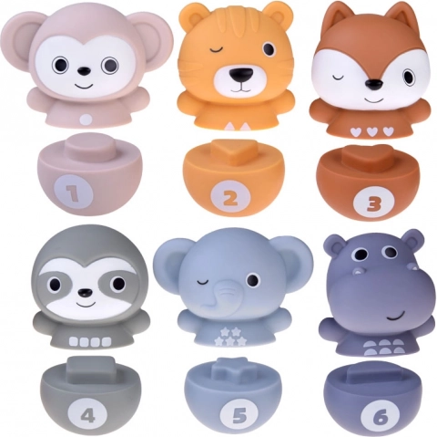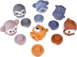 Alegeți dintre șase figurine animale diferite: maimuță, elefant, hipopotam, tigru, leneș și veveriță.