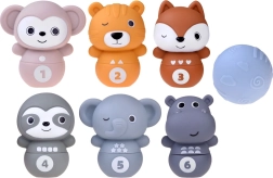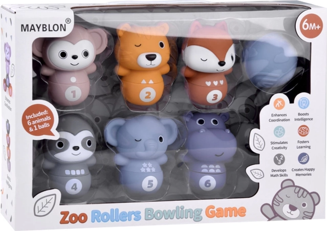 Jucăria Bowling cu animale Zoo aduce copiilor bucurie în joacă și, în același timp, îi învață noi abilități. Fiecare animal are pe burtă numere de la 1 la 6 și forme geometrice care ajută la învățare și recunoaștere.