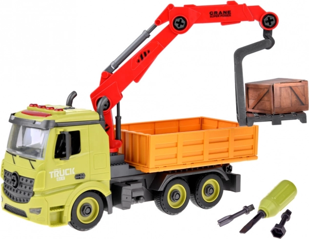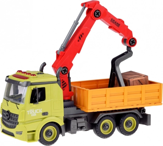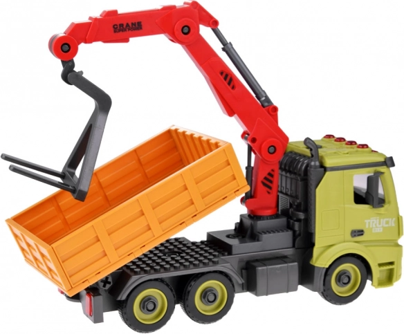 Camionul de construcții cu macara este alegerea perfectă pentru micii pasionați de utilaje, oferind ore întregi de distracție grozavă. Vehiculul este realizat din plastic și impresionează prin culori vii, brațul macaralei rotativ și lateralul rabatabil al remorcii.