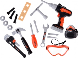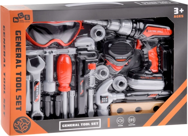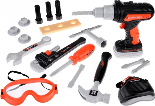 - Echipament complet: Setul include bormașină, ciocan, chei și ochelari de protecție, permițând diverse jocuri de reparație.