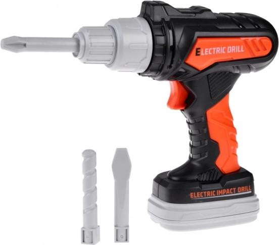 Bormașina din set se rotește în ambele direcții, permițând înșurubarea și deșurubarea eficientă a șuruburilor, imitând realist funcționarea unei bormașini reale.