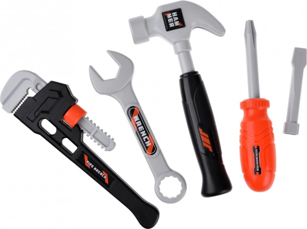 Pentru fiecare mic meșter care dorește să-și testeze abilitățile de reparație, acest mare set de unelte este alegerea perfectă. Setul este format din unelte din plastic în trei combinații de culori: negru, portocaliu și gri, și oferă forme realiste care stimulează joaca creativă și imaginativă. Reparațiile zilnice devin distractive, fie că este vorba de prinderea roții unei mașinuțe sau strângerea unui șurub al căsuței de păpuși.
