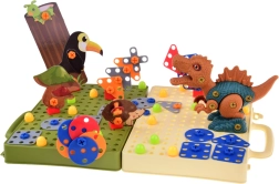 Piesele de construcție colorate și șuruburile le permit copiilor să asambleze, pas cu pas, dinozauri atractivi. Învățarea prin joc le întărește răbdarea, concentrarea și abilitățile tehnice.