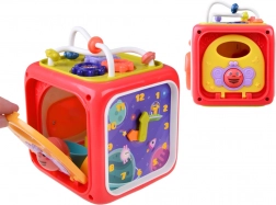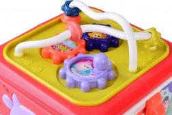 Acest cub educațional multifuncțional este conceput să crească odată cu copilul. Pe fiecare latură se află o activitate diferită: pian luminos cu cântecele și sunete de animale, elemente mecanice pentru degețele, volan pentru micii șoferi, ceas pentru învățarea timpului și sortator pentru distingerea formelor și culorilor. Datorită dimensiunilor compacte, este ideal pentru plimbări și călătorii.