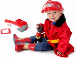 Topor, rangă, stație walkie-talkie, insignă și legitimație de pompier – micul salvator are tot ce îi trebuie pentru un joc realist.