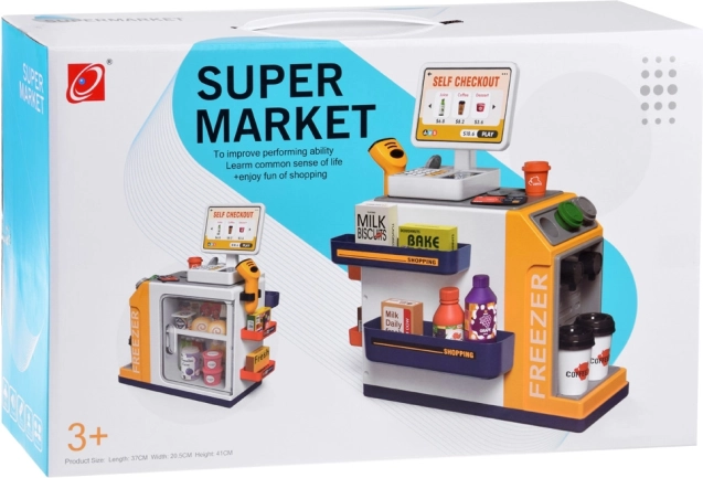Copiii pot scana produsele, introduce prețuri și plăti cu cardul sau „cash”. Casa de marcat cu sunete și scannerul cu lumină susțin jocul realist și învățarea matematicii de bază.