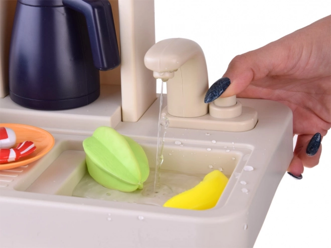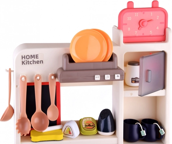 Setul include chiuvetă cu robinet funcțional și circuit închis de apă, datorită căruia copiii pot „spăla” vasele. Bucătăria mai oferă cuptor, mașină de spălat vase, frigider, blat de lucru, ceas, precum și numeroase spații de depozitare cu rafturi și cârlige.