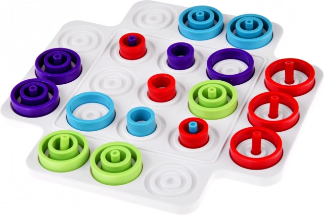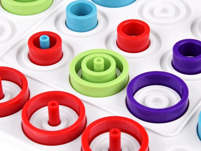 Inelele colorate și țărușii susțin coordonarea mână–ochi, imaginația spațială și concentrarea – ideal pentru copii și adulți.