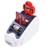 Cititorul de carduri funcționează prin trecerea cardului, emițând un sunet de scanare și aprinzând un LED.