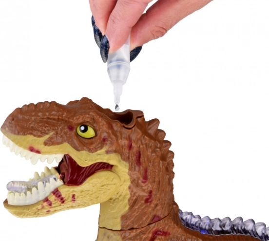 După umplerea rezervorului cu apă, T‑Rex eliberează abur iluminat din fălci, care, împreună cu răgetul, creează un efect impresionant de prădător autentic.