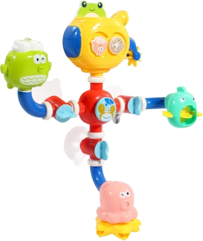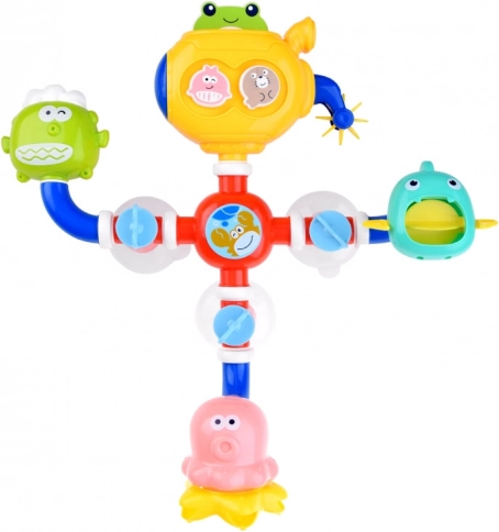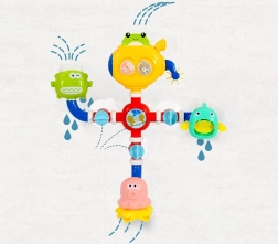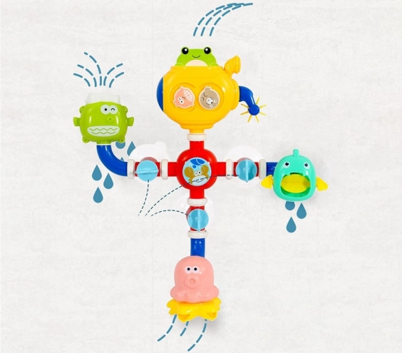 Jucăria distractivă de baie este concepută pentru a susține dezvoltarea senzorială a copiilor. Designul viu colorat și elementele interactive precum moara de apă și caruselul stimulează imaginația copiilor și aduc varietate în timpul băii. Datorită ventuzelor, poate fi ușor atașată pe peretele căzii sau pe faianță, asigurând stabilitatea în timpul jocului.