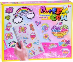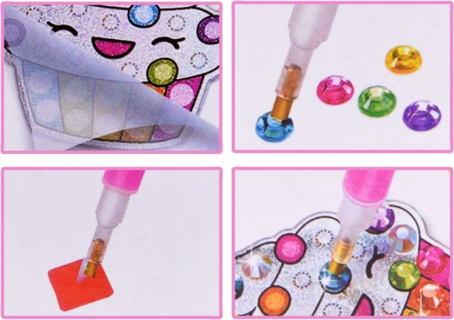 Acest set permite crearea a 12 stickere minunate cu ajutorul micilor diamante strălucitoare. Trebuie doar să alegi culoarea potrivită și să utilizezi aplicatorul special pentru a pune piesele pe sablonul adeziv. Rezultatul este o decorațiune frumoasă și colorată.
