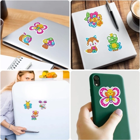 Stickerele colorate și sclipitoare pot fi folosite pe diverse obiecte, inclusiv laptopuri, frigidere sau huse de telefon.