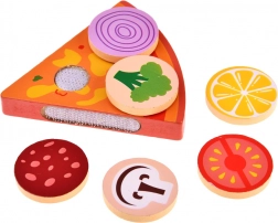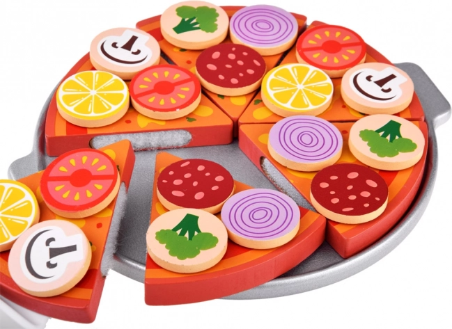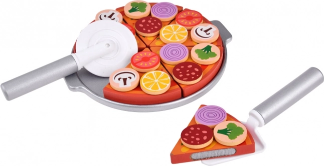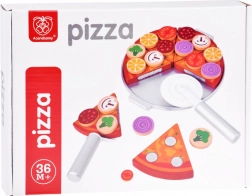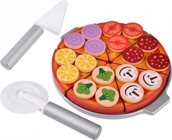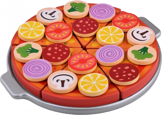 Acest set de pizza din lemn oferă copiilor posibilitatea de a deveni bucătari-șefi în propria lor pizzerie. Cu 27 de piese din lemn, inclusiv accesorii colorate, copiii pot crea și servi pizza după imaginația lor. Bucățile de pizza sunt unite cu bandă velcro, ceea ce permite o tăiere ușoară și asamblare repetată.