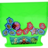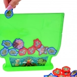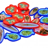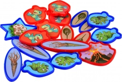 Setul conține 15 jetoane albastre și 15 roșii, cu motive atractive cu dinozauri. Dimensiunea plăcută ușurează prinderea și sporește confortul în timpul jocului.