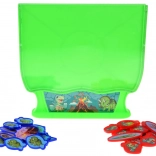 Aruncarea jetoanelor prin fantă exersează motricitatea fină, precizia și răbdarea. O activitate excelentă, care distrează și în același timp dezvoltă abilitățile copiilor.
