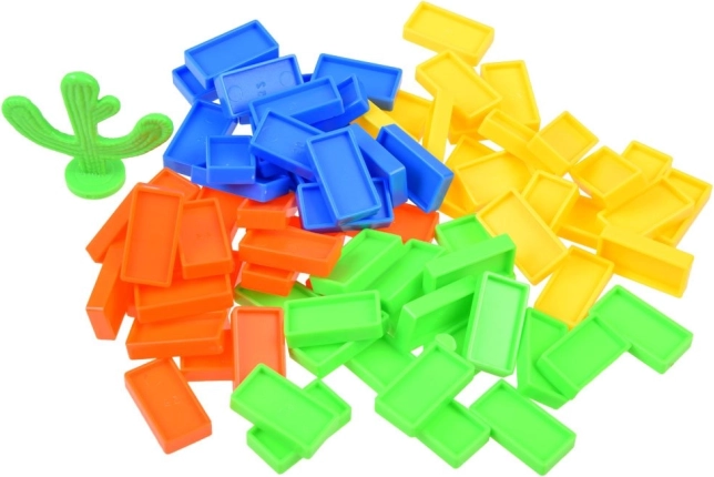 Setul include 80 de piese de domino în culori vii, un alimentator pentru umplere ușoară, un conector decorativ în formă de cactus și trenulețul propriu-zis, cu elemente transparente care dezvăluie mecanismul. Setul sprijină motricitatea fină, răbdarea și percepția spațială – ideal pentru joc individual sau în grup.