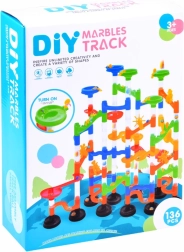 Această pistă de bile este ideală pentru copiii care iubesc construcția și experimentarea. Din piesele colorate din plastic poți asambla cu ușurință spirale, poduri, coșuri și carusele și poți crea trasee originale pe care bilele se deplasează fluent. Setul include și un număr generos de bile pentru un joc dinamic.