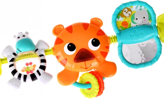 Proiectată cu culori frumoase și texturi variate, această jucărie suspendată include diverse elemente, printre care un tigrișor, o zebră și o oglindă, extinzând opțiunile de joc ale micuțului dvs. Apăsând nasul tigrișorului, acesta luminează și cântă melodii, stimulând simțurile și încurajând dezvoltarea abilităților motorii fine.